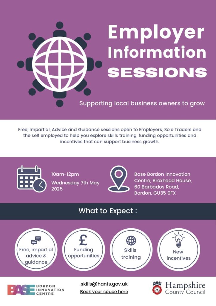 Free, Impartial, advise and guidance with support from the skills and employment team at Hampshire County Council to help you explore skill, training, funding opportunities and new incentives.