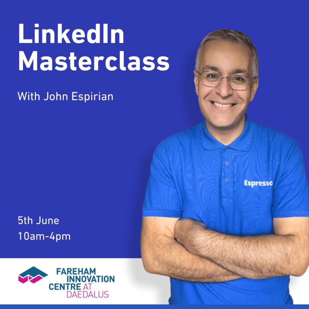 Our trainer is the brilliant John Espirian who describes himself as the “relentlessly helpful LinkedIn nerd”.
